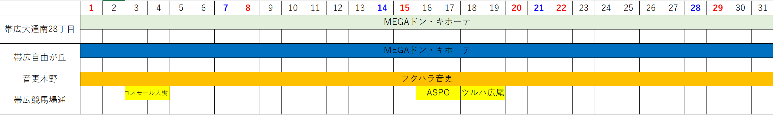 * コロナウィルス等の影響により急遽変更となる場合が御座います。詳しくは各店舗までお問合せお願い致します。
