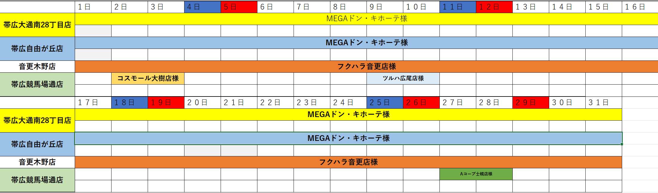 * コロナウィルス等の影響により急遽変更となる場合が御座います。詳しくは各店舗までお問合せお願い致します。
